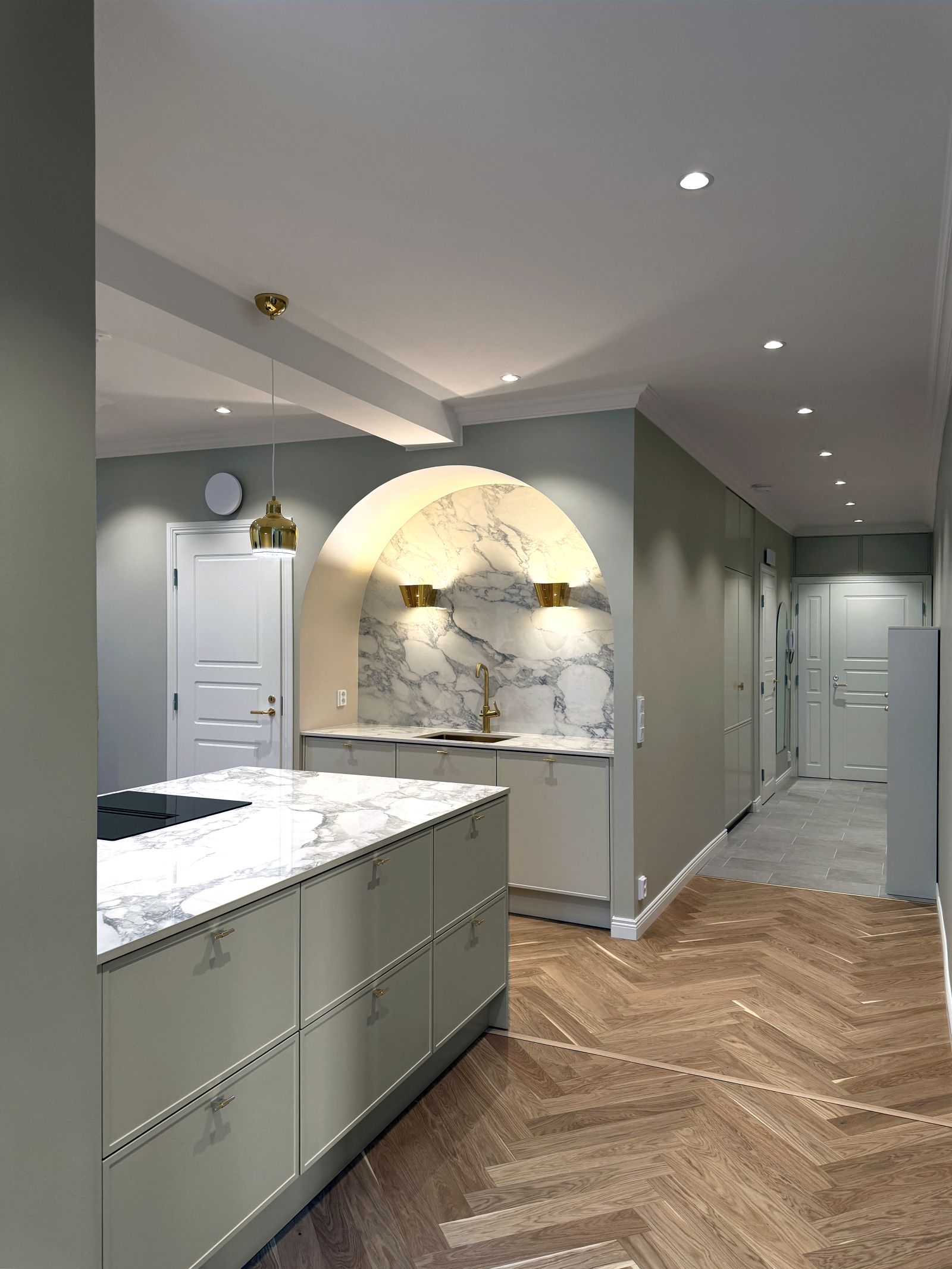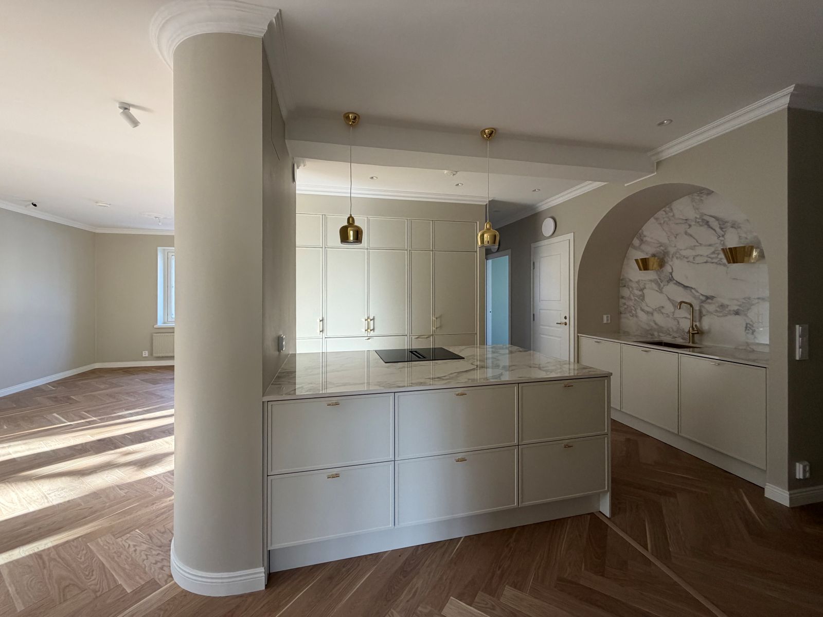 Hankkeen arkkitehtisuunnittelu kattoi 40-luvulla rakennetun asuinhuoneiston kokonaisvaltaisen peruskorjauksen ja tilamuutokset Taka-Töölössä. Tehtävässä onnistuminen edellytti huolellista tilasuunnittelua, jotta viisihenkiselle perheelle voitiin luoda pitkäikäinen, toimiva ja arjen tarpeisiin joustavasti mukautuva koti.
