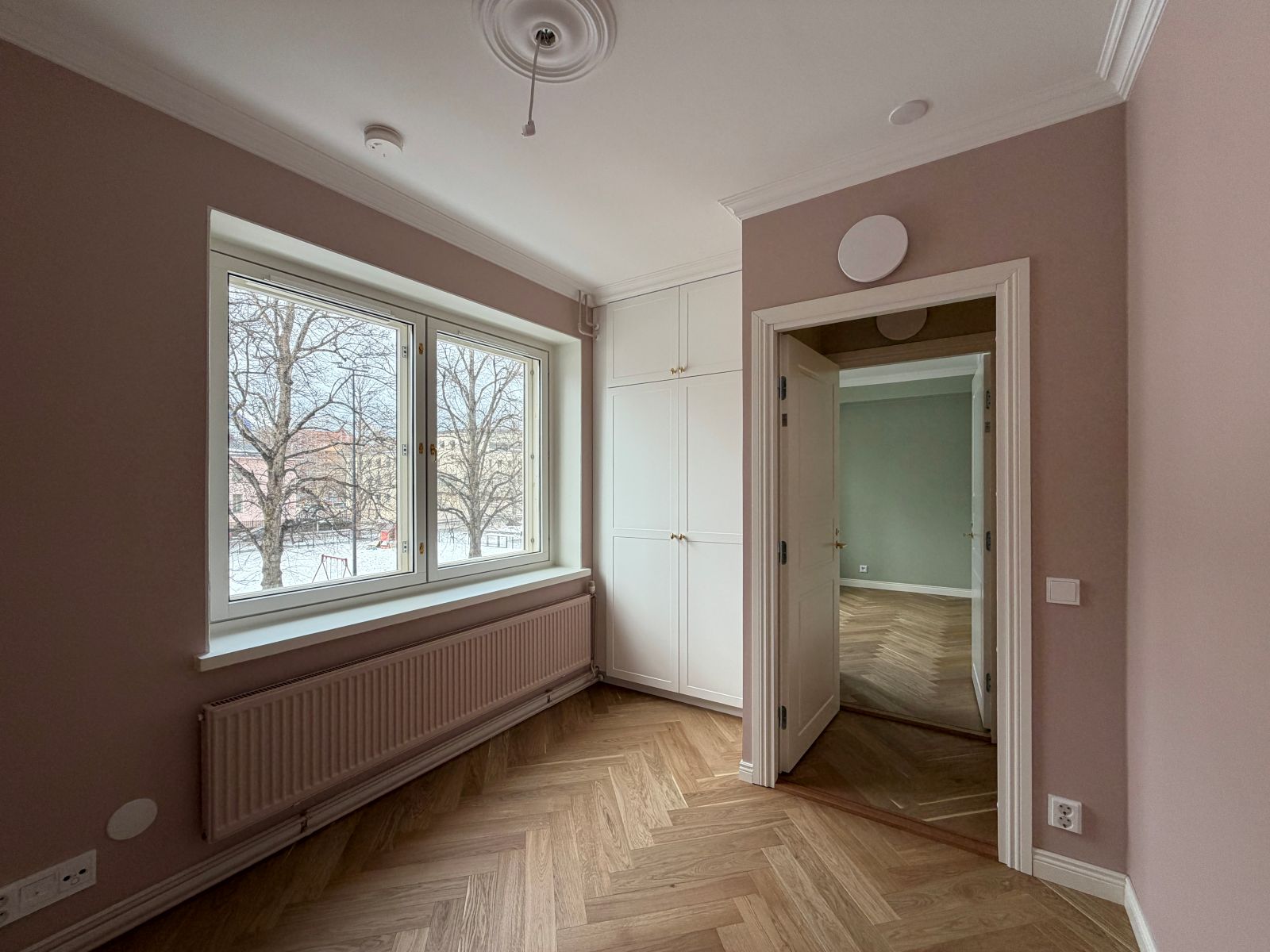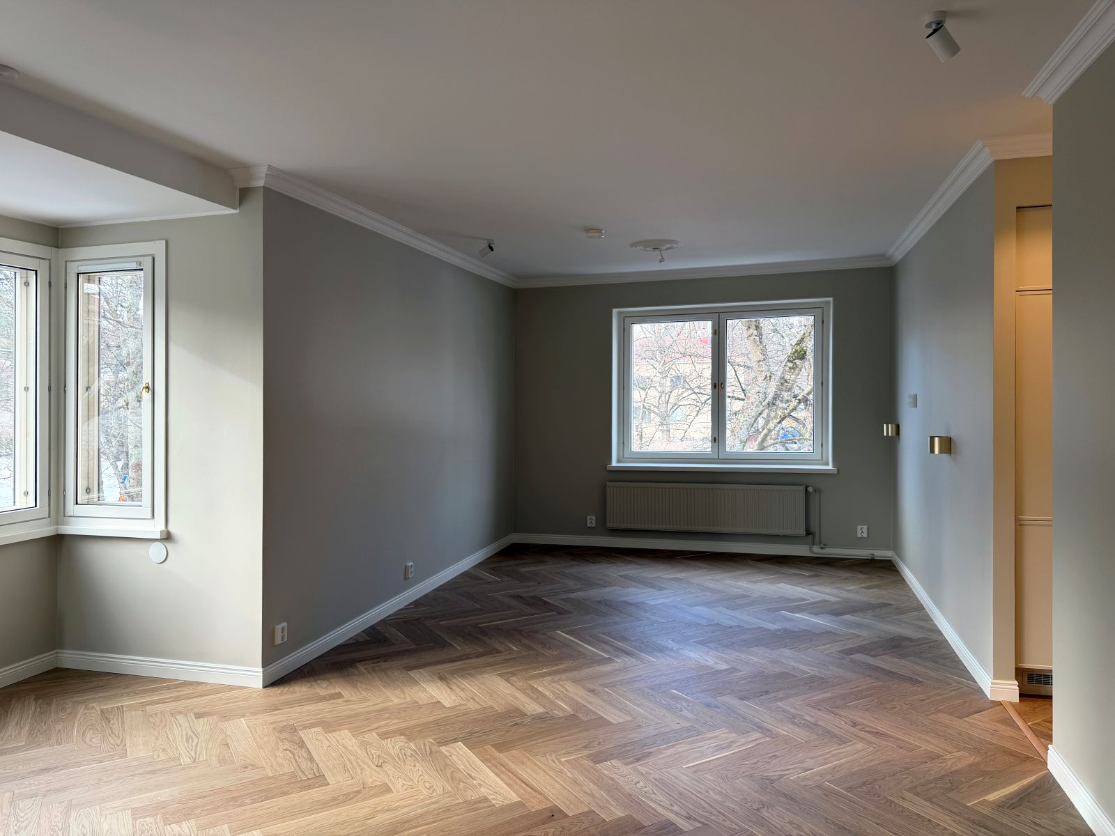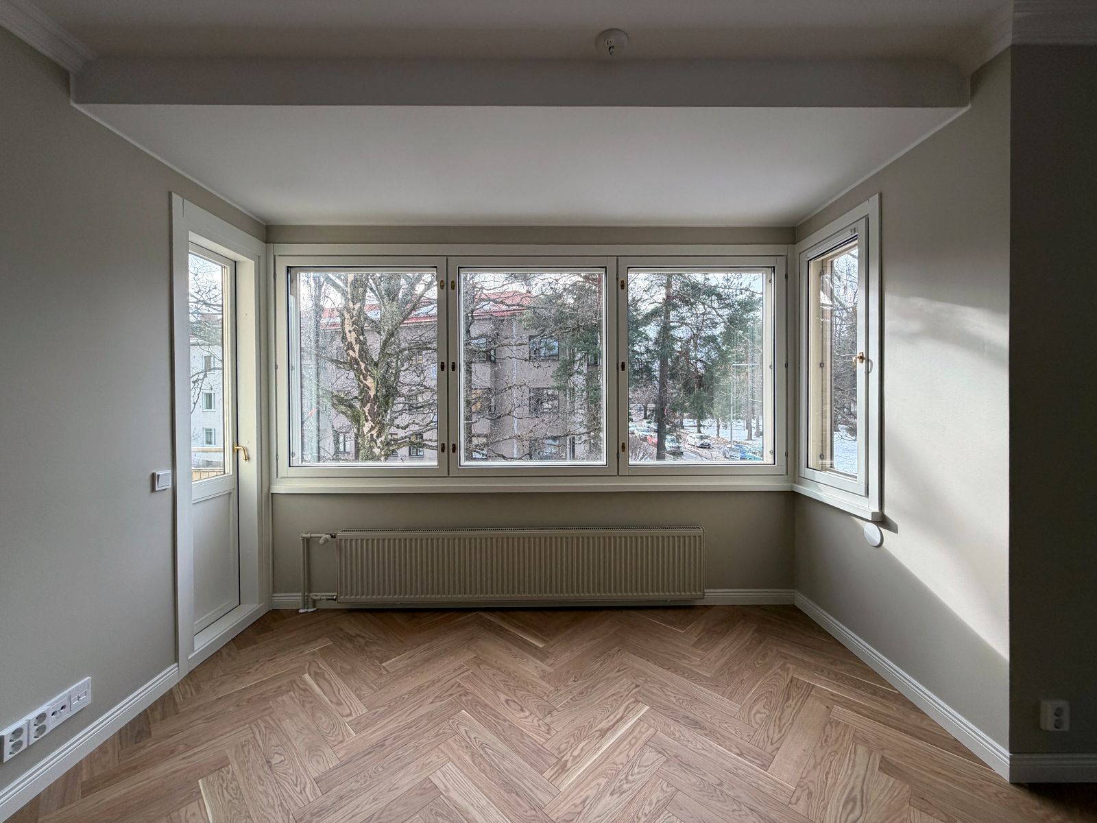 Tiukat ääneneristystavoitteet kaikkien huonetilojen sekä ympäröivien huoneistojen välillä ohjasivat rakenteellisien ratkaisujen suunnittelua ja tilojen sijoittelua, jotta asumismukavuus ja yksityisyys voitiin varmistaa koko huoneistossa.